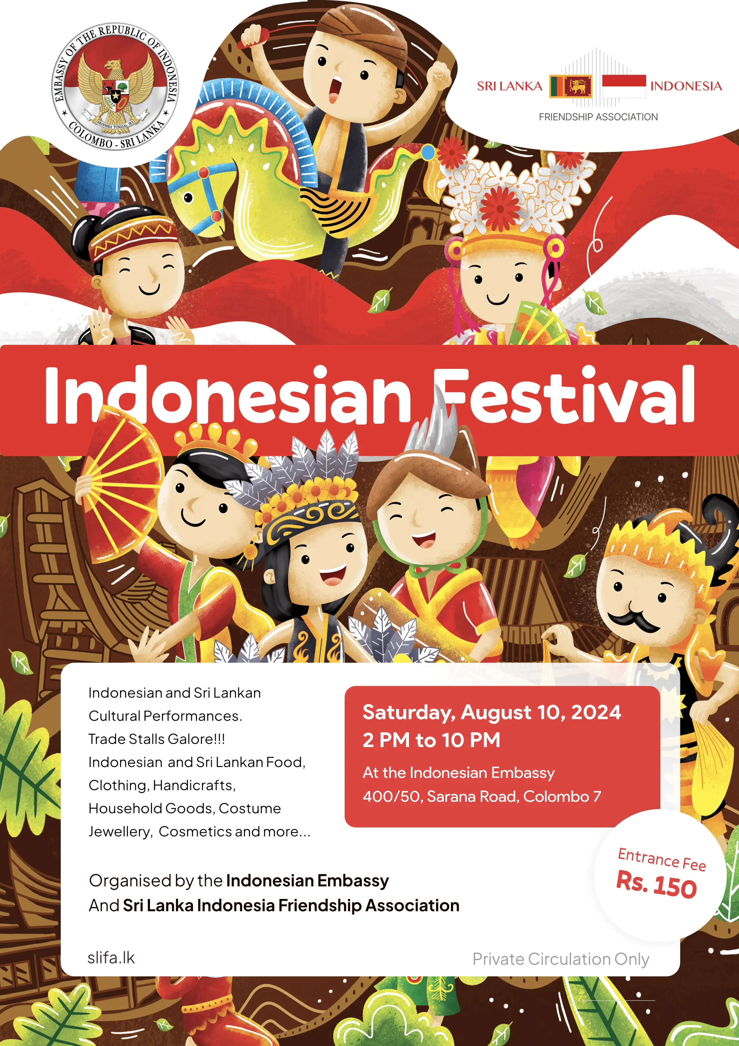 Experience the vibrant culture of Indonesia right in the heart of Colombo! The Indonesian Embassy and Sri Lanka Indonesia Friendship Association invite you to an unforgettable cultural celebration on Saturday, June 28, 2025.